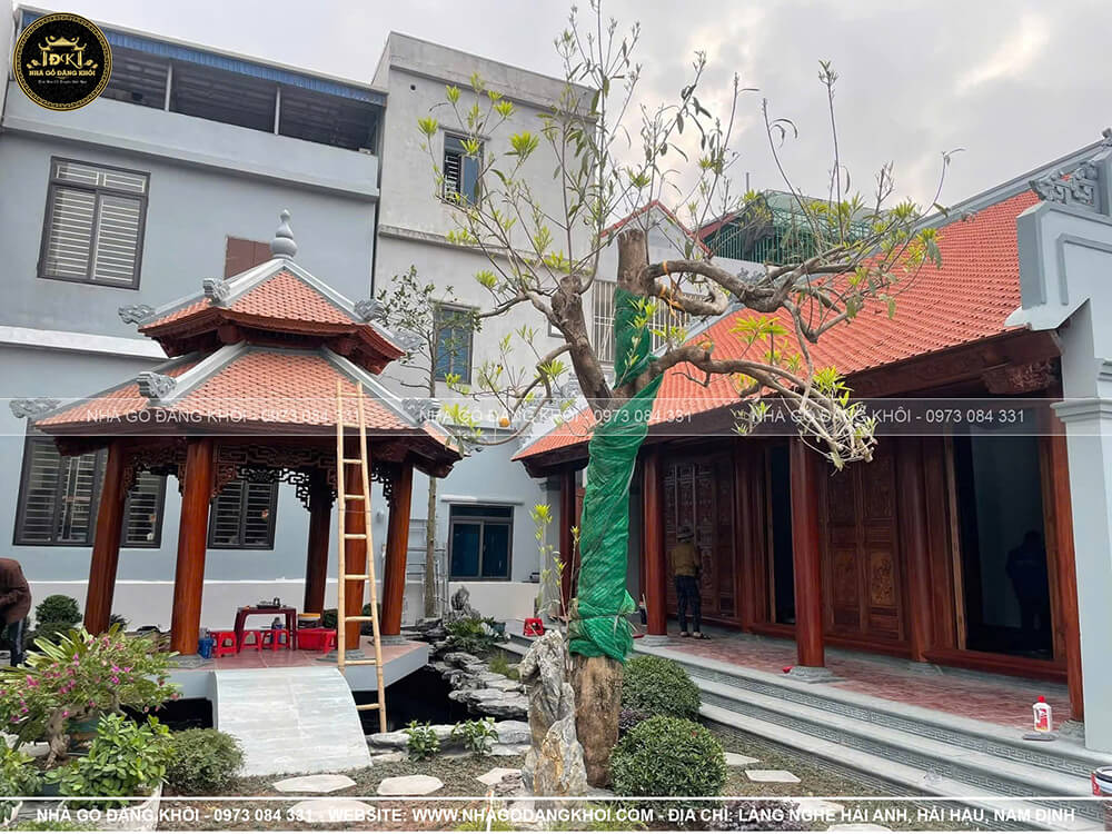 KHUÔN VIÊN NHÀ GỖ 5 GIAN HIÊN THÔNG TẠI BẮC GIANG – NHÀ GỖ ĐĂNG KHÔI