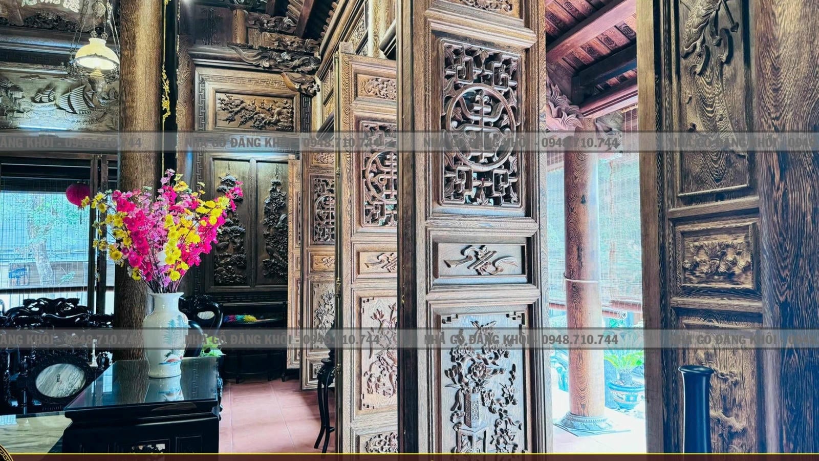 Nội Thất Nhà Gỗ 3 Gian 4 Mái Đao Gỗ Mun Đuôi Công Tại Bình Dương – Nhà Gỗ Đăng Khôi