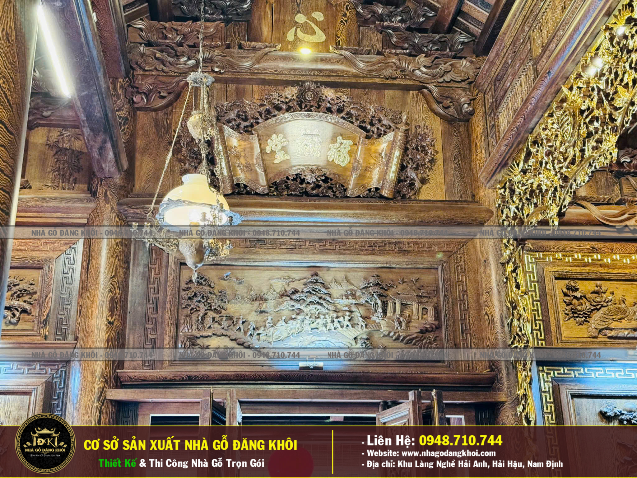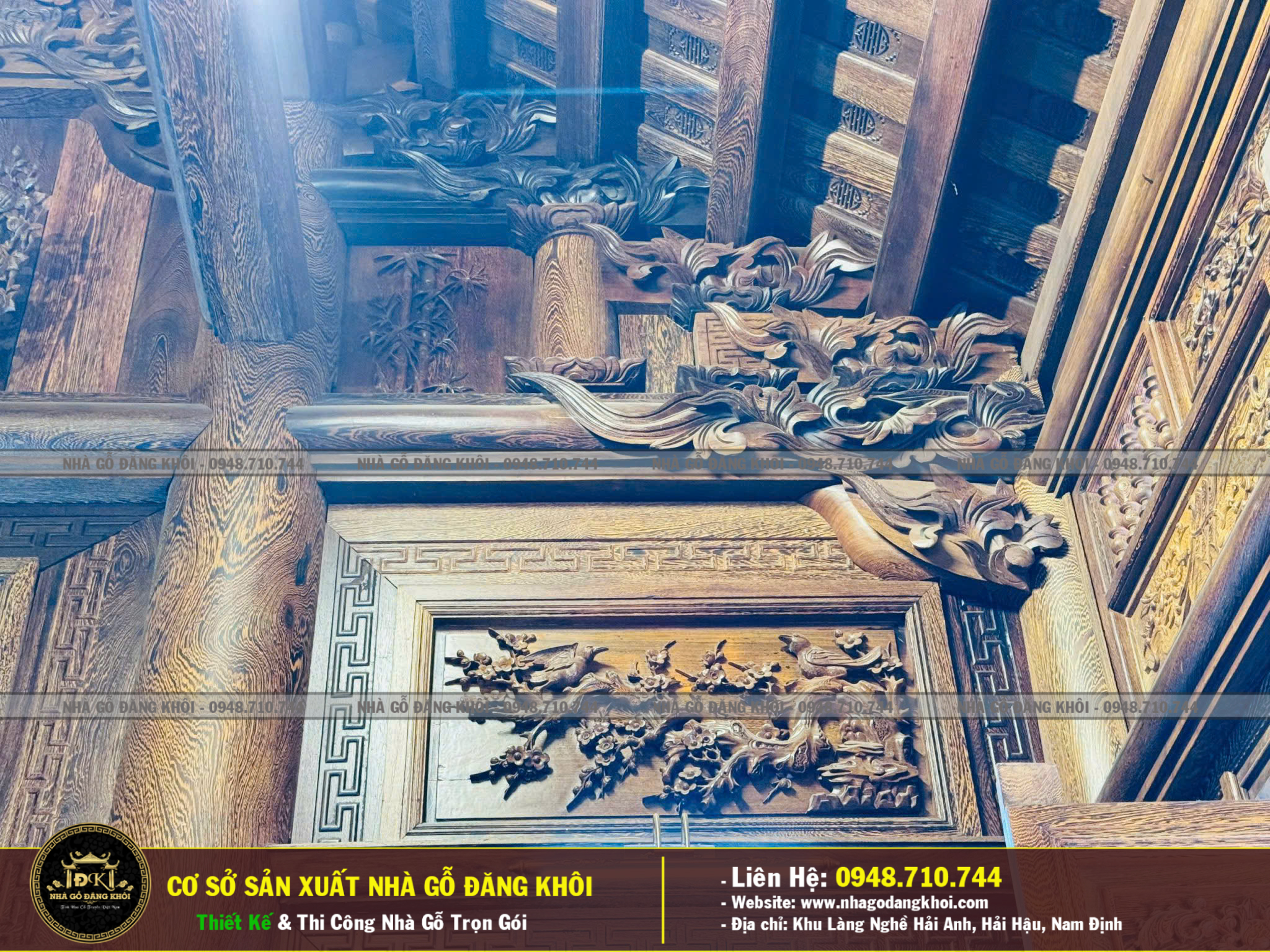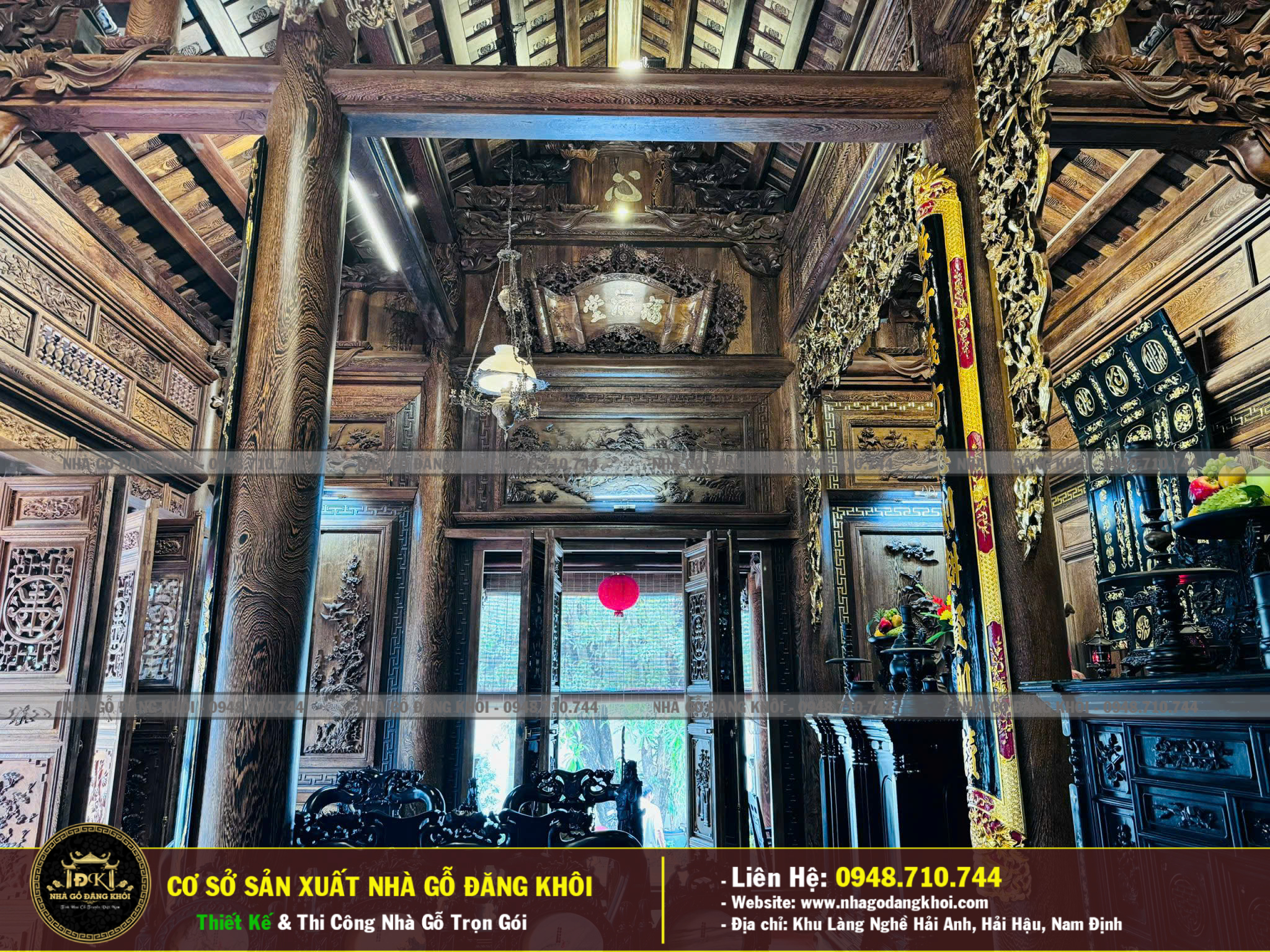 Nội Thất Nhà Gỗ 5 Gian Mái Đao Gỗ Mun Đuôi Công Thi Công Tại Bình Dương